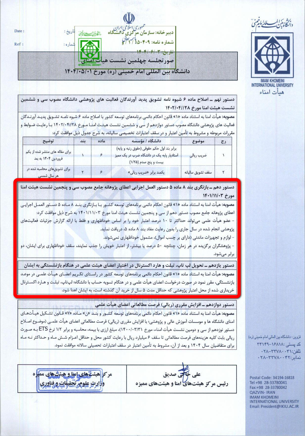 | دانلود | بازنگری بند8 ماده 5 دستورالعمل اجرایی اعطای پژوهانه جامع | هیأت امنا | 1404/05/01 | - |